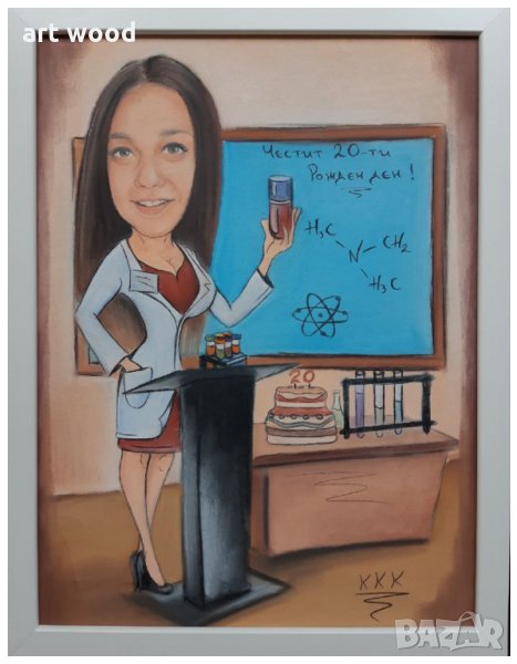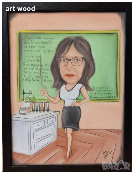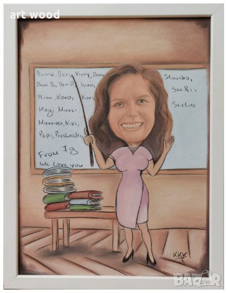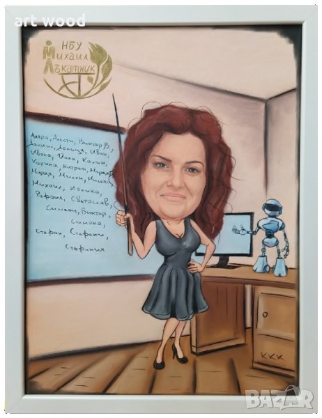 Ръчно рисувана карикатура - шарж по снимка за учител/ка → Обява 33110728