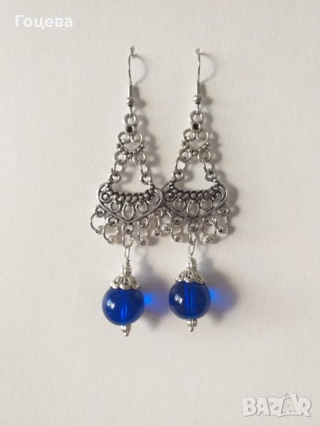 Прелестни обици с кобалтови сини мъниста и орнаменти в цвят Сребро → Обява 33116591