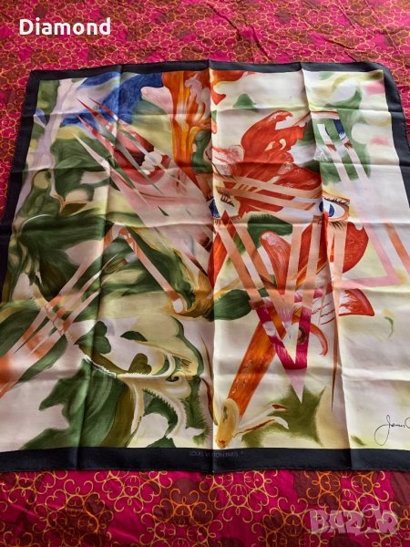 Louis Vuitton vintage scarf оригинален шал. Louis Vuitton си сътрудничи с идващите и възникващи творци в продължение на години, за да създава зашеметяващи творения. Този конкретен шал е от Джеймс Розенквист, който е един от пионерите на поп-артистичното движение. Това красиво парче на 100 % коприна се отличава със цветен дизайн, съчетан с лице на жената за уникален и модерен външен вид. Шала е чист и красив, с естествени ръчни гънки навсякъде, създаден около 1987 г. с колекционерска стойност. Цената е крайна!!!