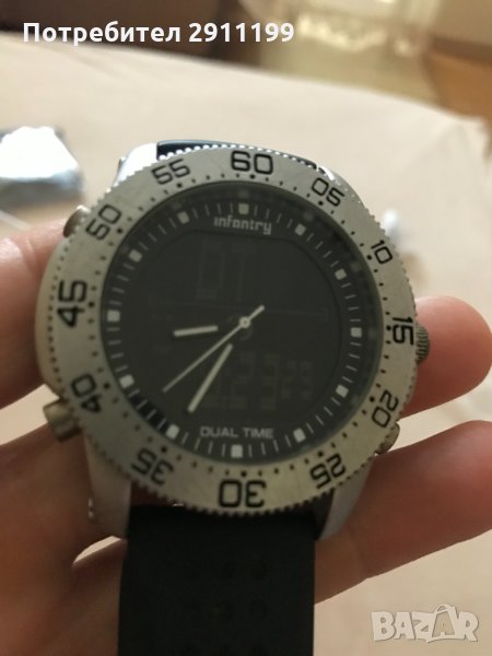Използван дигитален и аналогов мъжки часовник, марка:infantry. Работи отлично. Идеален за ползване, подарък или колекция. За още различни часовници може да разгледате и другите ми обяви.