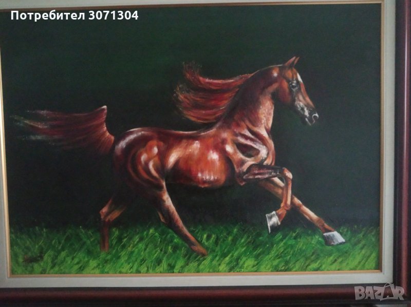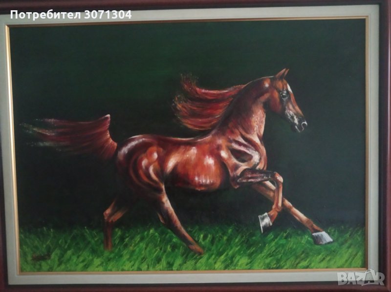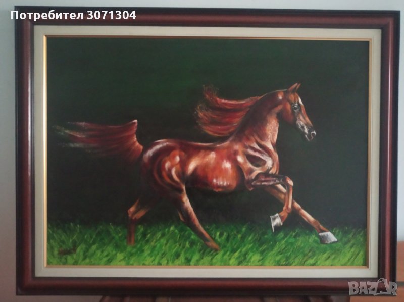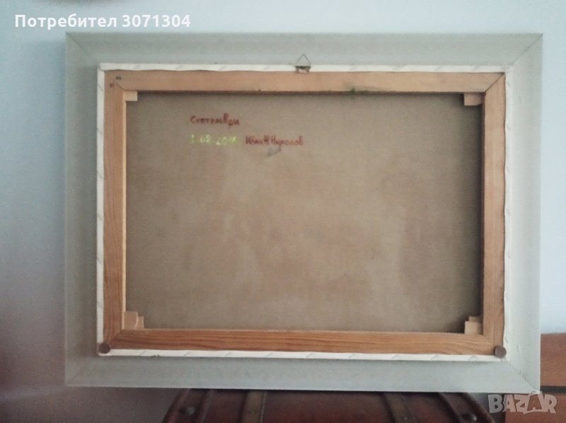 Маслени бои върху платно с рамката и подрамка размери височина 62см на ширина 82см на рамката от автора.