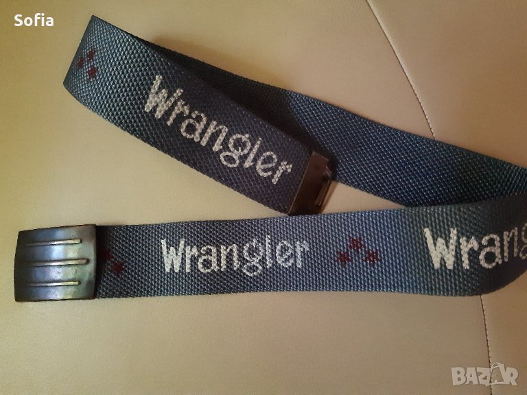 WRANGLER оригинален спортен колан с логото в бяло по цялата му дължина+звездите в бордо.Цвета е тъмно сиво-синъо.Качествен здрав машинна плетен текстил.