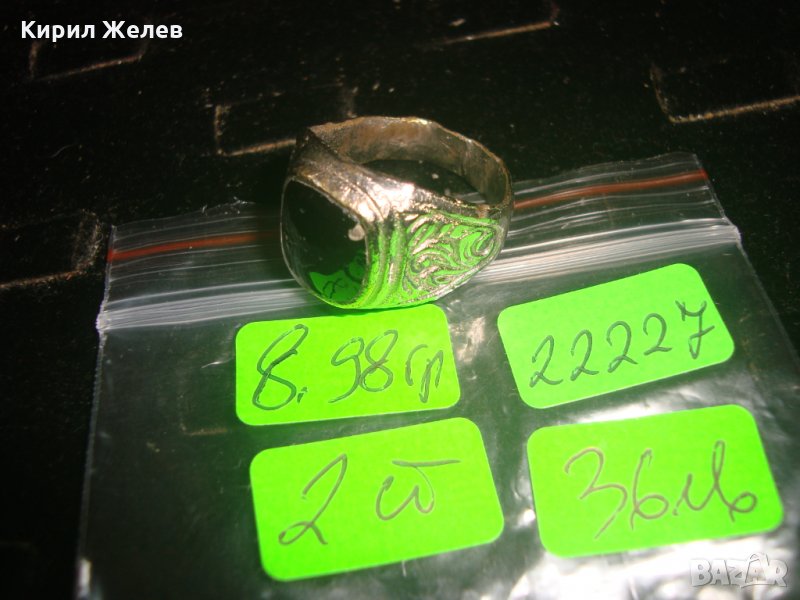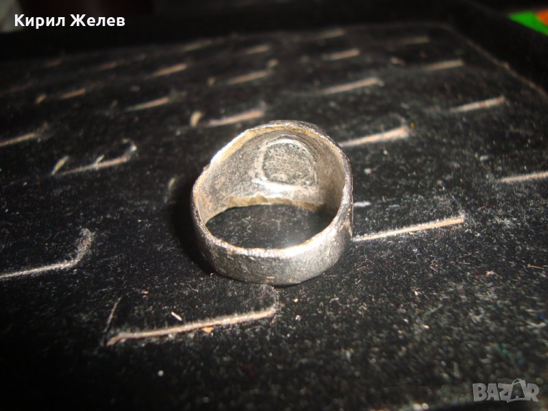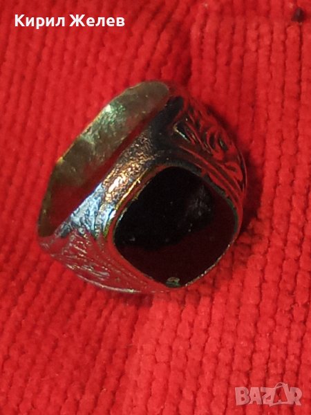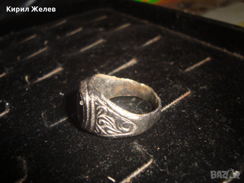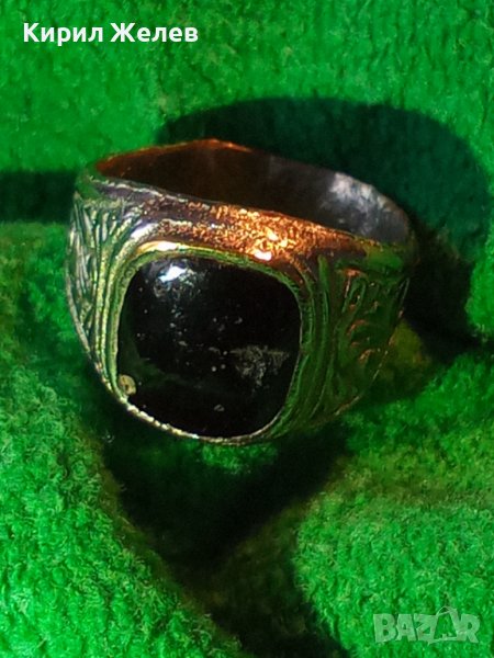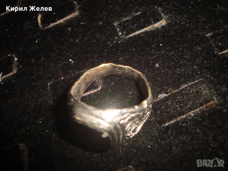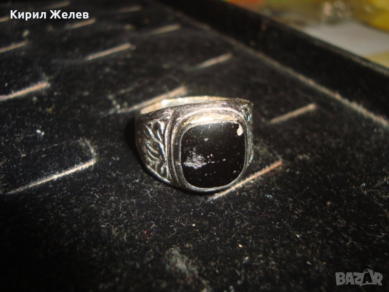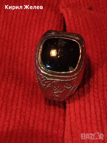 СТАРИНЕН БРОНЗОВ ПОСРЕБРЕН МАСИВЕН ПРЪСТЕН с ЧЕРЕН ОНИКС РЪЧНА ИЗРАБОТКА 22227