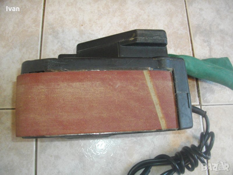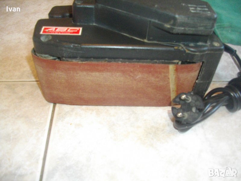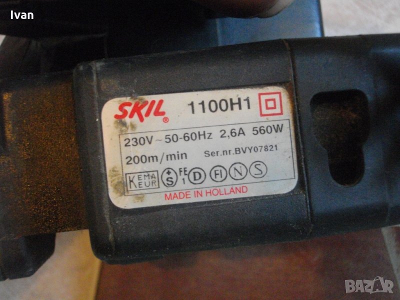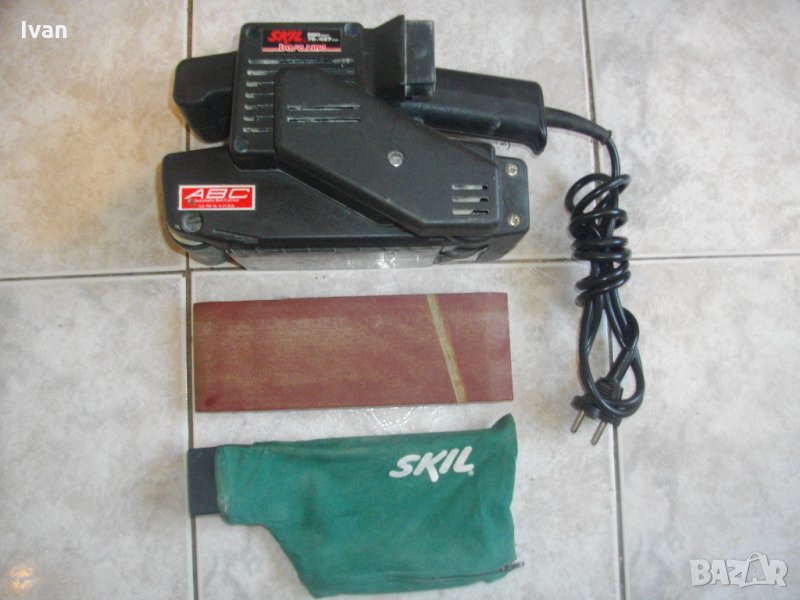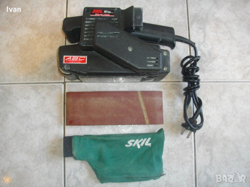 Малък, удобен лентов шлайф, професионален оригинален модел на Скил. Марка и модел - Skil 1100 H1. Производство - оригинално Холандия - Made in Holland, упоменато на фабричните маркировки. Машината е със запазен външен вид и добро техническо състояние. Работи добре има започнало искрене от ниво четки/ротор . Мощност на мотора - 560 вата, защита - 2,6 ампера, скорост - 200 м/мин. За шкуркови ленти станадартни, размер 76х457мм. АВС автоматичен контрол на скоростта. Заден гумиран амортисьор. Наличие на оригиналната платова торба на конектора на отпадъчен прах, с фабричното лого и цип. Тел. за контакти: 0 896782271.