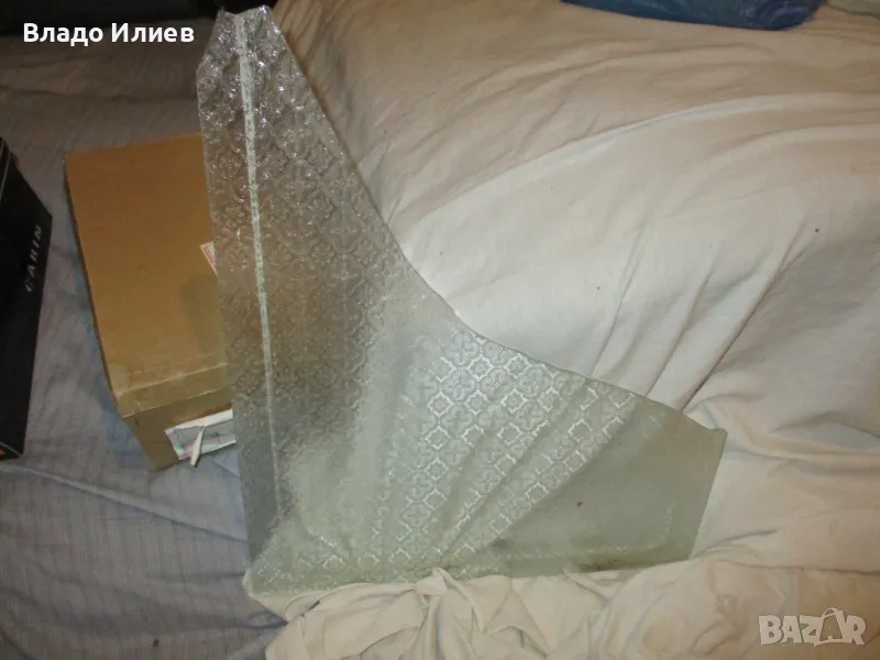 качество.Всички орнаментни стъкла са с еднакви шарки-5 броя.Размери поред на снимките/последните 5/ :с неправилна форма частично с боя-44/43 см,с неправилна форма 38/53 см /най-тясно място/,с неправилна форма 38/36 см най-тясно масто,с неправилна форма 32/55 най-широко място,с неправилна форма частично с боя 45/18 см най-тясно място.
