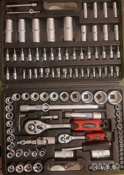 - 17 броя вложки 1/2'' къси: 10мм; 11мм; 12мм; 13мм; 14мм; 15мм; 16мм; 17мм; 18мм; 19мм; 20мм; 21мм; 22мм; 24мм; 27мм; 30мм; 32мм;
