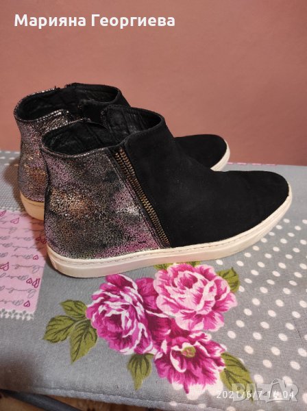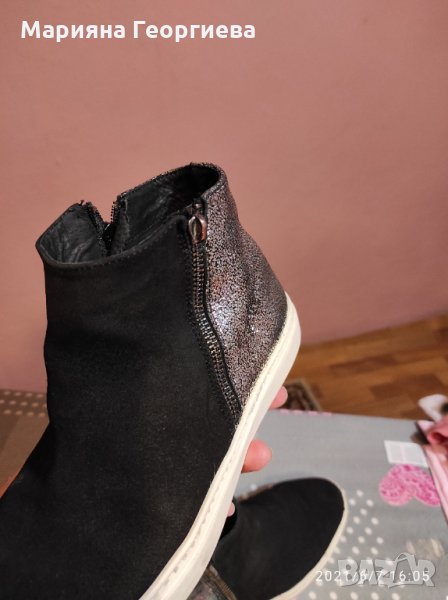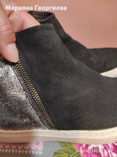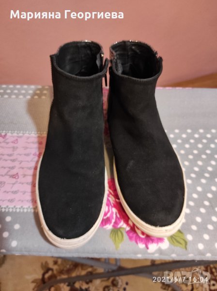 Дамски боти от естествен велур. Носени с малки забележки. Само двата декоративни ципа са проблем.