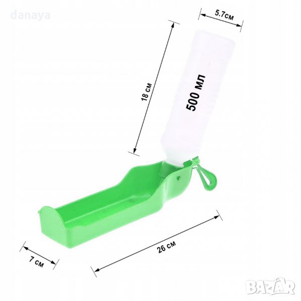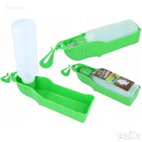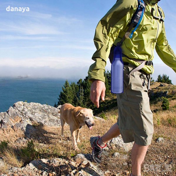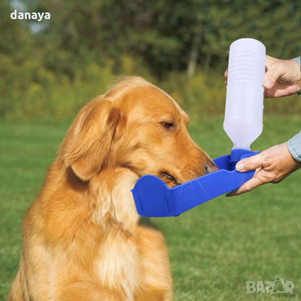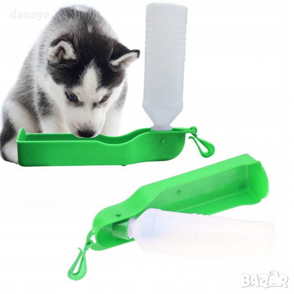 Преносима бутилка за вода за кучета. Поилка, с която домашните любимци да пият вода удобно извън дома: по време на разходка в парка, при пътуване в кола, на почивка и др. Тя работи много лесно: просто трябва да напълните бутилката с вода и когато домашният любимец е жаден, да разгънете бутилката и леко да я стиснете, за да потече водата в поилката.