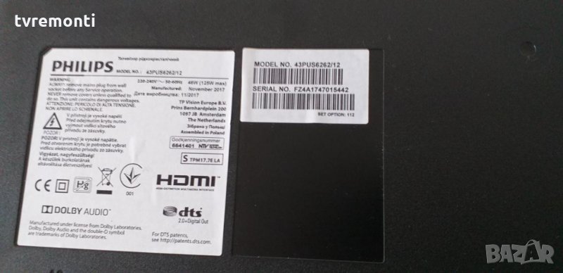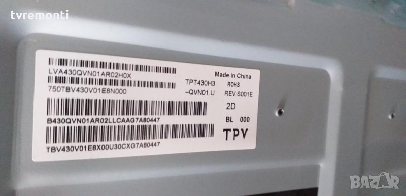 TCON T430QVN01.0 43T03-C00 Борда е гарантирано работещ Демонтиран от нов уред PHILIPS модел 43PUS6262/12 43PUS6412/12 , със счупен дисплей TPT430H3-QVN01.U REV.S001E тествана от нащия техник 0988312803 за повече инфо