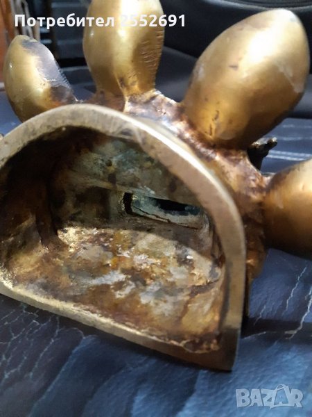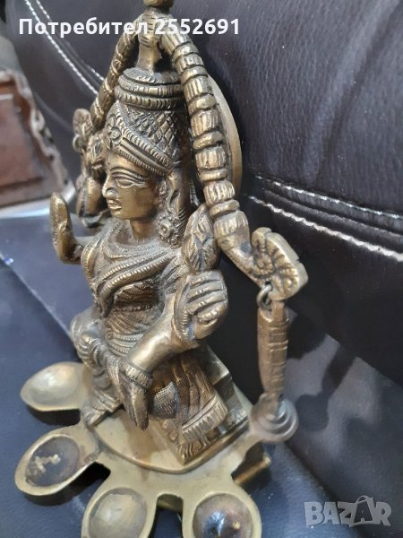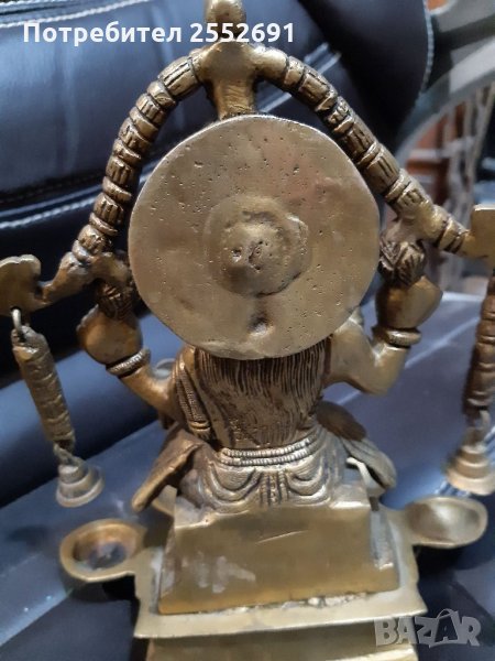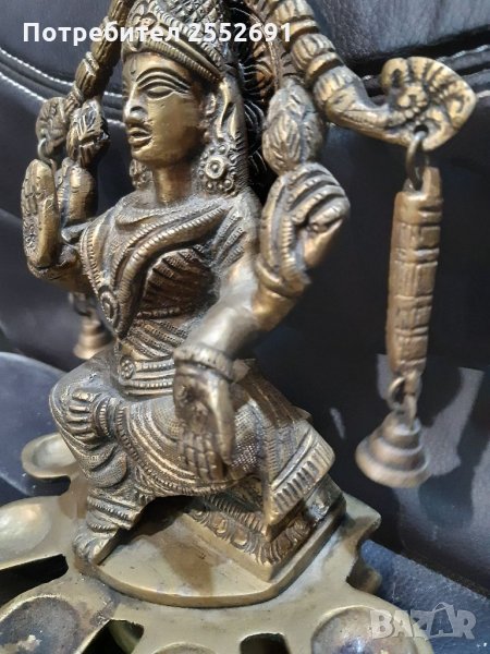 Масивна, бронзова, религиозна фигура със звънци и ритуална основна част. Размери-21/17/12см.