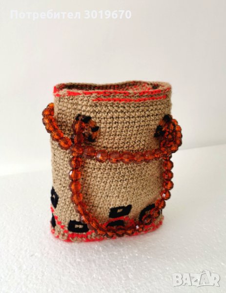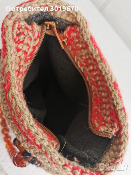 Чанта от плетена от канап, височина 23см, ширина 20 см, дрьжките от големи мньсти, подхожда за народни носии, етнофестивали