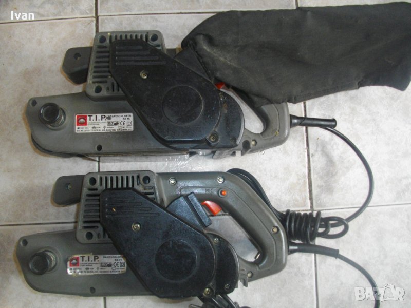 лентов шлайф за шлифоване,професионален модел на Тип.Машината е с проблем-ЗАБЕЛЕЖКА-работи,тръгва веднага,движи амортисьора,но има искрене на ниво четки или ротор,и започва лекичко да мирише на загоряло и да пуши.Немско оригинално производство.Марка и модел-T.I.P. BS 75.Машината е с голяма скорост при работа-420 метра в минута.Мощност на мотора-760 вата.Размер на шкурковата лента-76х533мм.Запазен външен вид и приемливо техническо състояние при работа.Забележка-леко искрене на ниво четки и ротор.Автостоп на спусъка-шпиндел.Оригиналната платова голяма торба на конектора на отпадъчен прах е налична.МАШИНАТА СЕ ПРЕДЛАГА ЗА ЧАСТИ ИЛИ НЯКОЙ ДА СИ Я ОПРАВИ.ЦЕНА НА ЦЯЛА МАШИНА-59 ЛВ. ЦЕНА САМО НА РЕМЪКА-29 лв-4 ПИСТОВ-25 СМ ВЪНШЕН ДИАМЕТЪР.
