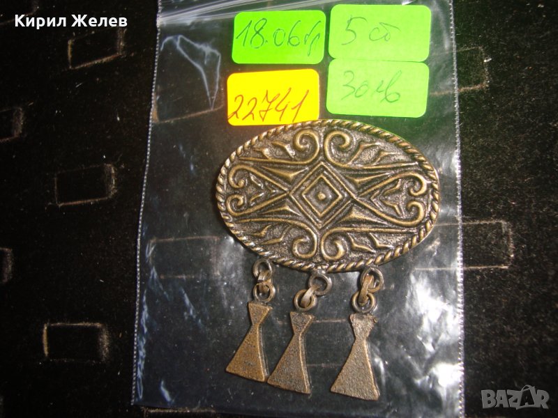 БРОНЗОВА СТАРИННА ЕТНО ОРНАМЕНТИРАНА БРОШКА НАКИТ БИЖУ 22741