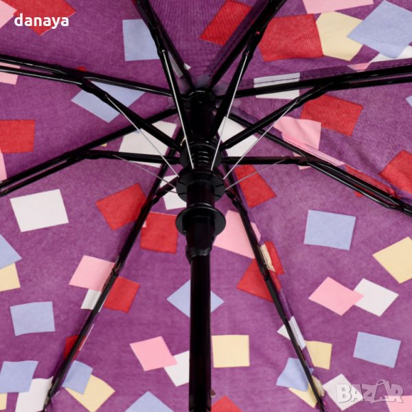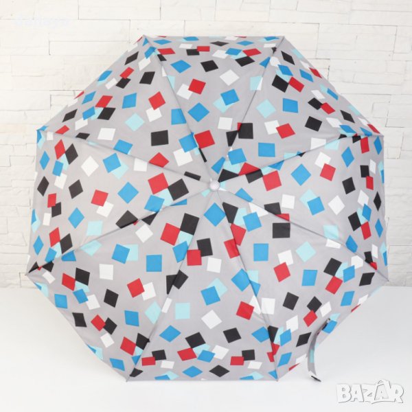 Сгъваем чадър за дъжд, чудесно решение, когато искаш да имаш чадър в чантата си по всяко време. Стилен и шарен, с множество цветни квадрати, създаващи настроение в мрачното дъждовно време. Предлага се в различни цветове.