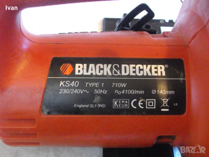 ръчен циркуляр,модел на Блек Декер.Анлийско оригинално производство,упоменато на фабричната маркировка,внос. Марка и модел-Black Decker KS40.Машината се предлага ЦЯЛА за ремонт или за части.Когато се пусне-бръмчи,не тръгва движение на ротора и въртене диска.Запушва веднага.Не е препоръчително да се пробва на включено захранване,преди да се отвори и да се види какъв е проблема.Цената е съобразена със състоянието.Запазен външен вид.Мощност на мотора-710 вата,обороти-4100 в минута.За дискове размер ф140 мм.Наклон на плота-до 45 градуса.Дълбочина при рязане-до 44 мм.Двустранна автозащита на спусъка при работа.На машината има поставен оригинален на марката режещ диск,за дърво,твърдосплавен,с видирани зъби,които нямат никакво износване.Диска не мърда,наляво надясно,при опит с ръка да се задвижи. ОПИСАНИЕ на втората по-тъмна и по-нова машина- почти нов 710 ватов ръчен циркуляр,профи модел на Блек Декер,от новите модели.Машината се предлага за части или някой да си я оправи-не тръгва.Не е тествана от техническо лице,предполагам,че е нещо по спусъка-бутона защита,който се натиска двустранно заедно със спусъка,за да тръгне.Марка на циркуляра-Black Decker KS 40.Много запазен външен вид-като нов.Няма драскотинка.Мощност на мотора-710 вата,3,4 ампера,обороти-4100 в минута,за дискове размер ф140мм.Дълбочина при рязане-до 40мм.Машишната е малка,компактна,от новите модели с ергономичен дизайн и олекотено тегло.Оригинално английско производство,упоменато с маркировки,внос Англия.Вградено място за ключ шестограм за диска отзад на корпуса.Наклон на плота-до 45 градуса.Вградено място за поставяне на металният плот на линеален ограничител рязане. Машината е с поставен оригинален режещ диск на марката,почти нов.Цената е твърда и крайна - 59 лв. за брой машина, с поставеният оригинален диск от описанието и снимките.