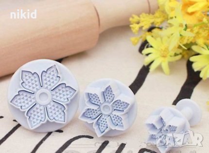 3 бр Нарцис Нарциси цветя пластмасови резци форми с бутало за сладки тесто фондан → Обява 33162498