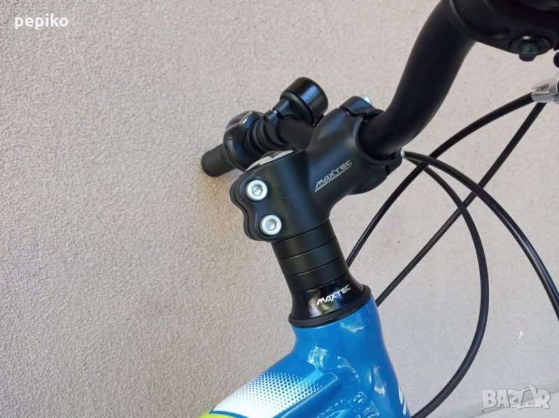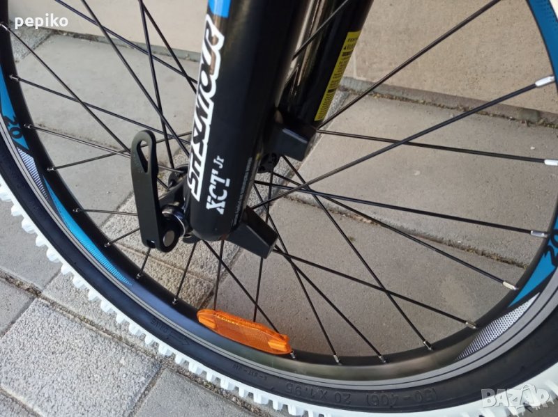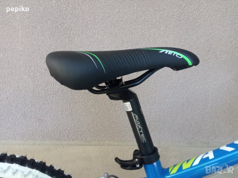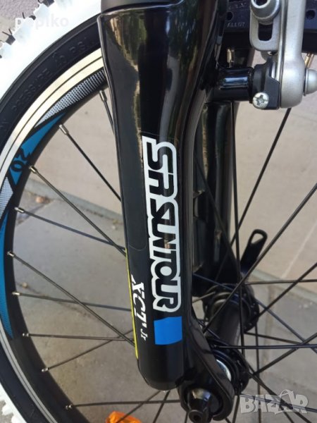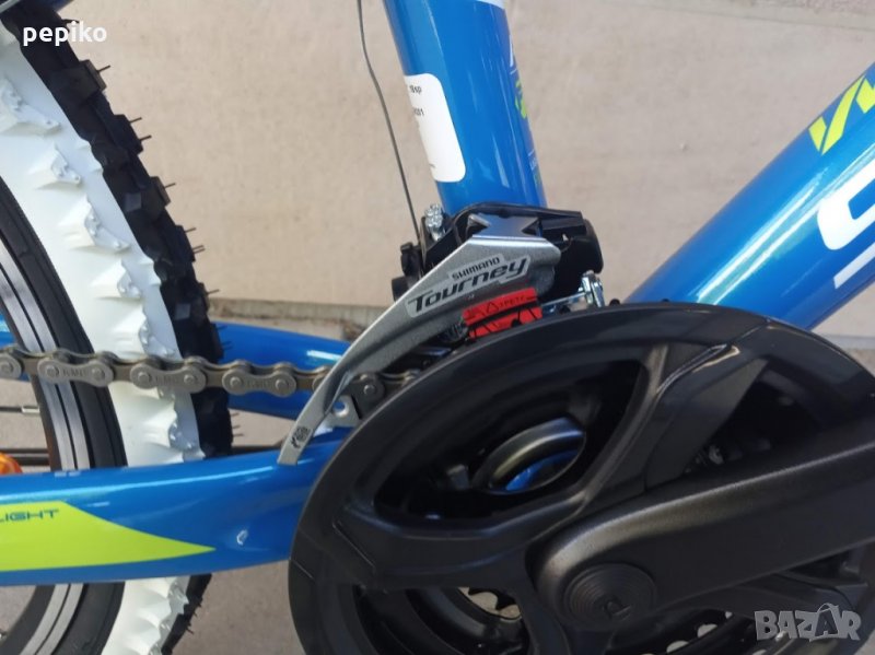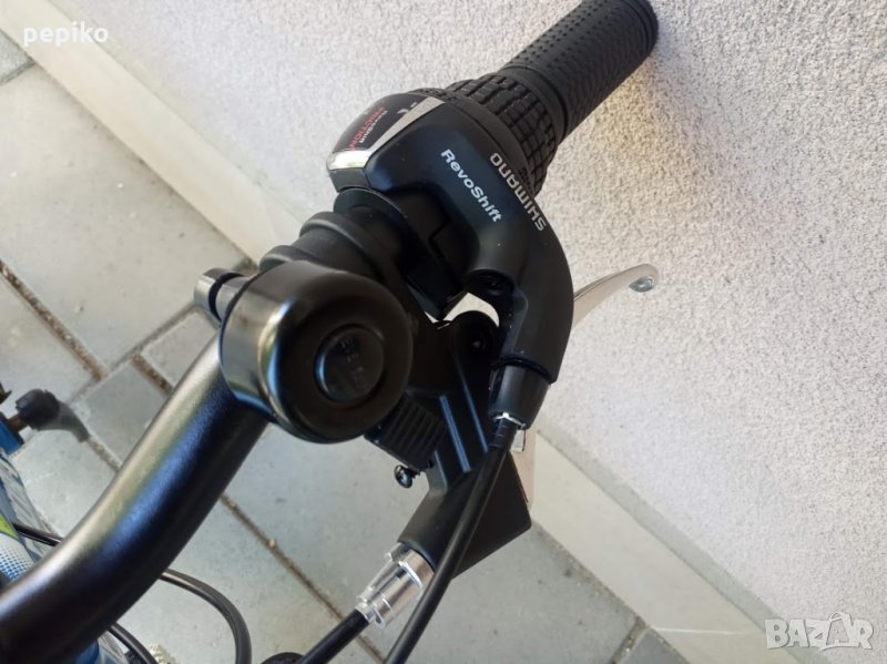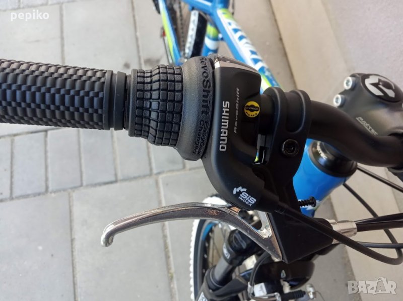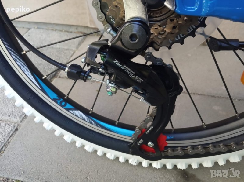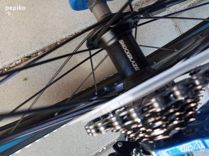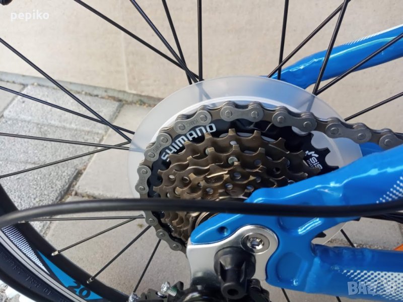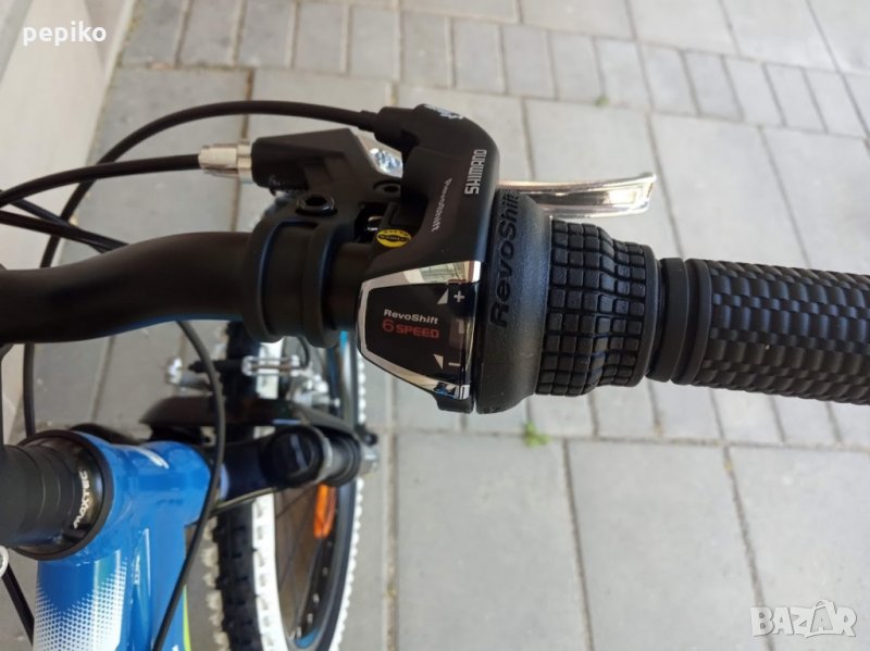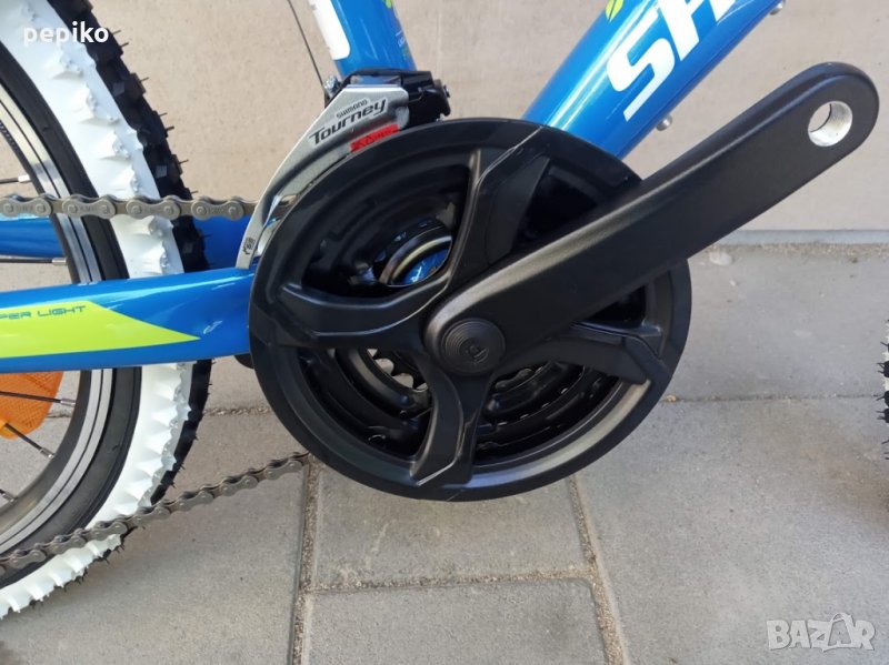 НОВ оригинален алуминиев детски велосипед SHOCKBLAZE WARRIOR 20 цола,олекотена супер лека алуминиева рамка 20 цола с 18 скорости,фиксирани превключватели SHIMANO SL-RS 35 TOURNEY,средно движение SHIMANO касета,алуминиеви курбели SHOCKBLAZE 42-34-24, алуминиеви педали XERAMA,преден отклонител SHIMANO TX50 TOURNEY,заден отклонител SHIMANO TZ50 TOURNEY,задни венци SHIMANO TZ20 TOURNEY 14-28,алуминиево колче на седалката SHOCKBLAZE, удобна спортна седалка SHOCKBLAZE,предна и задна алуминиеви вибрейк спирачки PROMAX ТХ121,алуминиево колче на кормилото SHOCKBLAZE,алуминиево кормило SHOCKBLAZE,преден амортисьор алуминиев SR SUNTOUR XCT,чашки за вилката SHOCKBLAZE Н1-42,верига KMC HV-408,алуминиеви двойностенни усилени капли,алуминиеви главини с автомати за бърз монтаж и демонтаж,гуми с спортен грайфер КЕНДА 20 х 1,95 с бели кантове,размер на колелото 29 х 44см.изключително лек 11,5 кг.Уникален.