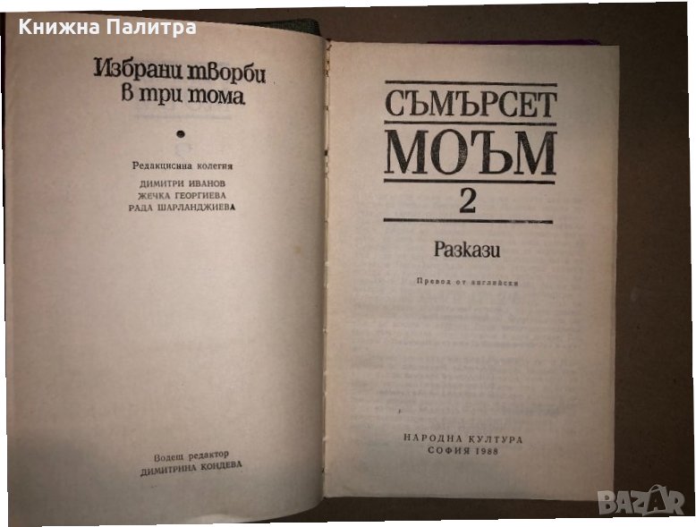 Избрани творби в три тома. Том 2: Разкази Съмърсет Моъм, снимка 1 - Други - 33165856 Избрани творби в три тома. Том 2: Разкази Съмърсет Моъм, снимка 2 - Други - 33165856 1/2