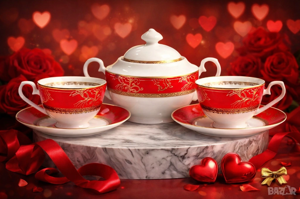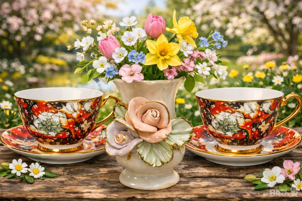 Красив комплект "Разцъфнал мак" чаша и чинийка костен порцелан с цялостен декор от макове .