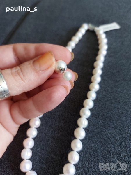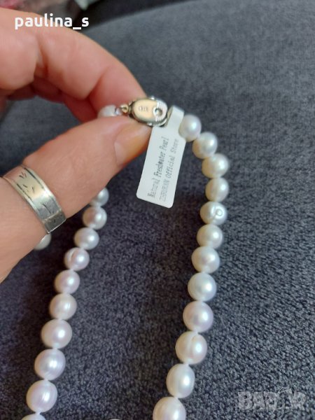 Нова огърлица от естествена речна перла със сребърна закопчалка - Цената е крайна, без пазарлъци 50 евро.