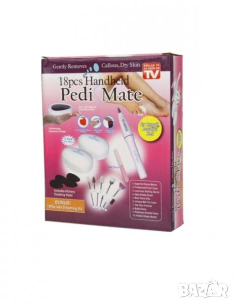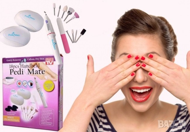 Pedi Mate е в комплект от 18 части и съдържа всичко, което ще ви е необходимо по пътя ви към съвършените крачета и ръце.