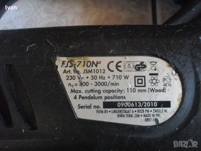 Ferm FJO - 710 N.Машината се предлага за части ЦЯЛА,-НЕ НА ОТДЕЛНИ КОМПОНЕНТИ,или някой да си я оправи.Мотора работи,липсва оста и главата.Мощен професионален вертикален прободен трион-зеге.Производство - Холандия. Мощност 710 вата,оборотиот 800 до 3000,регулируеми с 6 степени.3 степени на положение на режещият нож.Автостоп на спусъка.Масивен метален плот.Дълъг конектор на отпадъчният прах.Вградено място за ключ на захранващият кабел.Инструмента работи силно и мощно.Няма я оста с главата.Колелата под нея са там.Марка и модел на зегето-Ferm FJO-710N.