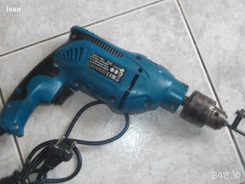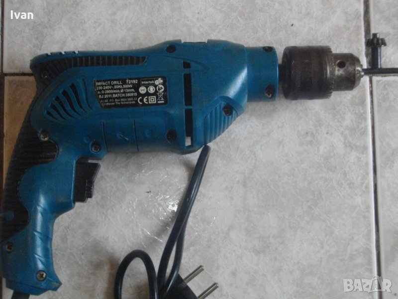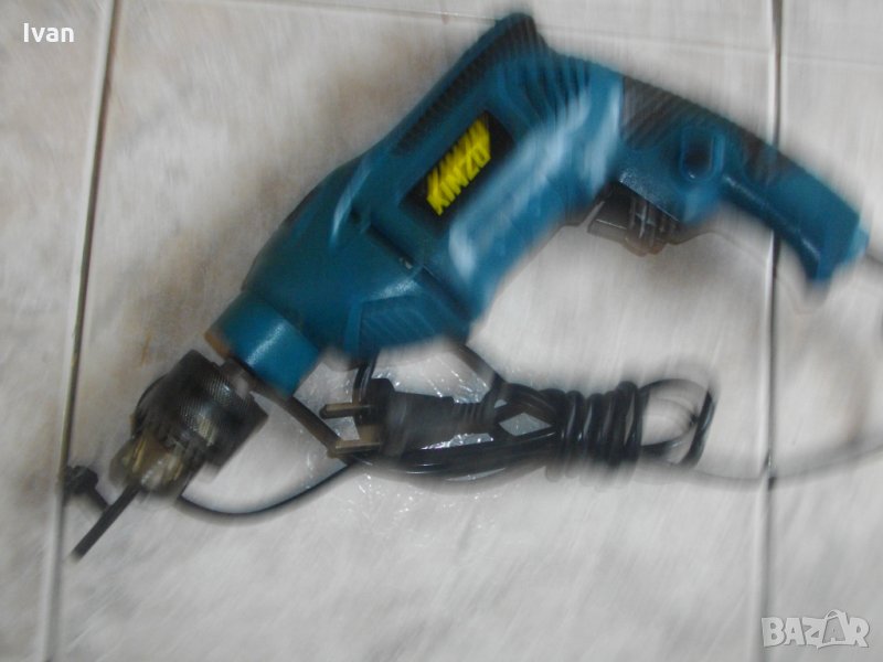 Цена 99 лв. Ударна бормашина-дрелка,професионален 500 ватов модел на лидера Кинзо.Холандско оригинално производство. Марка и модел-Kinzo 72192.Машината е като нова-с много запазен външен вид и отлично техническо състояние.Работи много добре.Бързо и ефикасно.Ползвана е много малко..Мощност-500 вата,бороти-от 0 до 2800 в минута,реверс смяна посока,автостоп на спусъка.Функция пробиване и функция пробиване с удар.Регулиране на оборотите от спусъка.Релефно покритие на дръжката против хлъзгане.Голям патронник-до 13 мм,метален .Оригиналният ключ за патронника е във вградено място на кабела.ЗАБЕЛЕЖКА към машината-дългият бутон реверс смяна посока над спусъка се е отчупил част от него, но това не пречи на работата,и реверса може да се превключва.