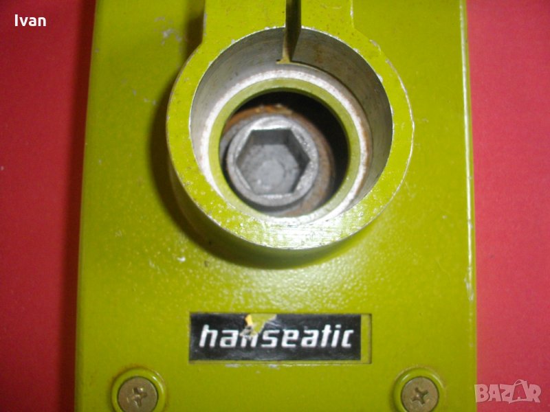 Описание на Приставка НОВА немска Hanseatic - Съвсем нова голяма масивна приставка правоъгълен виброшлайф за бормашина-дрелка,или други машини с възможност за снемане на патронника.Приставката е универсална.Немско оригинално производство. Професионален модел на Хансеатик.Марка и модел-Hanseatic 8E81.Идцяло масивна,метална,от дебело желязо,със захват за шкурката-масивни дебели железни скоби,разположени по двете ширини на плота.Работен плот-голям,масивен,метален-размер-220х110мм.За обикновенна шкурка.Подплатен отдолу с масивно платово покритие за убиране на вибрациите и запазване на шкурката.Дебелина на платовото покритие-8мм.Захват на приставката-шестенна вградена втулка,с диаметър 16мм.Приставката е без адаптор към втулката,за захват към машина.Към приставката има 1 брой оригинална шкурка. Оригиналната листовка на немски език,със схеми и указания за употреба.Прибрана е в оригиналната си картонена кутия.