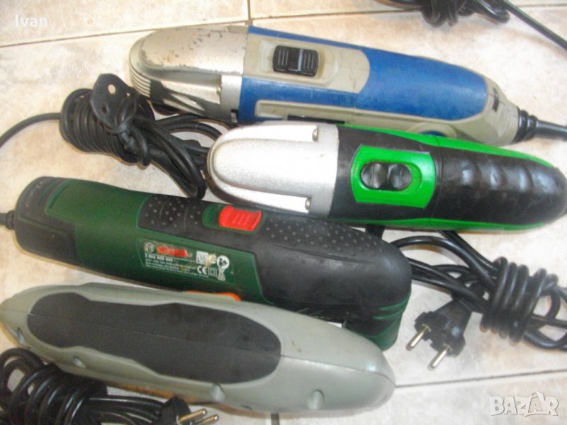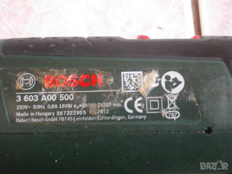 Описание на зелен реноватор -мултиинструмент с регулатор, Бош-190 вата-Унгрария 2013 г- ЦЕНА 159 ЛВ С ПОСТАВЕНАТА ДЕЛТА ТРИЪГЪЛНА ВЕЛКРО ВИБРО ПРИСТАВКА. Почти нов Реноватор,модел на Бош.Оригинално производство-Унгария 2013 година. Марка и модел BOSCH PMF 190 E.Машината е почти нова-много запазен външен вид.Работи добре.Силно и мощно.Със забележка по техническото състояние е-работи,стартирайки веднага,при включване.Пусковият ключ е изолиран-има нещо изгоряло при него.Оттам и мощността на оборотите е максимална.Потенциометъра на регулиране на оборотите не действа.Цената на машината е съобразена със забележката.Мощност на мотора-190 вата,0,8 ампера,обороти-1******** 000 в минута.6 степени на оборотите.Гумирани нехлъзгащи се покрития на корпуса.Машината е С ПОСТАВЕНА ОРИГИНАЛНА ДЕЛТА ТРИЪГЪЛНА ПРИСТАВКА.