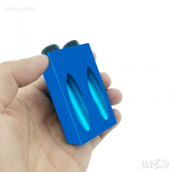 стяга. Водачът се монтира на шаблона чрез резба за да намали луфтовете и да центрира отвора с точност. Ограничителят се монтира на свредлото на подходящата дължина , която ви е нужна за да не пробиете материала до край. Стягата е тип "бърза" стяга изключително удобна за закрепване на шаблона. Може да използвате различни свредла от включените в комплекта. Шаблонът може да се използва за пробиване на отвори в дърво , метал , пластмаса и др. Подходящ при , изработка и сглобване на мебели от дърво , ПДЧ , Подходщ за подарък за дърводелци , рожден ден , имен ден и др.