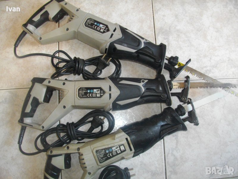 Триони втори и трети отгоре - надолу на снимките - описание.Силни мощни саблени реципрочни триони - немски професионален модел на Дуро. Машините имат леки забележки. Ниската цена се държи на забележките. Марка и модел - Duro Pro DES 850-2. Производство - оригинално Германия 2017 г. - Germany- упоменато на маркировките.