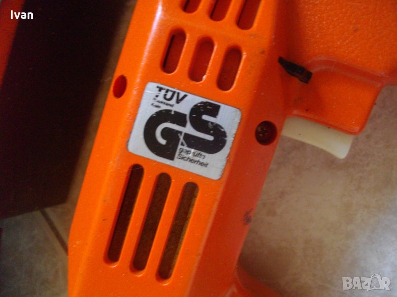 Машината е с много запазен външен вид и техн.състояние - ОТЛИЧНО. Работи, стреля и забива много добре. Силен, мощен удар. Макс 35 удара/мин. Функция блокировка на спусъка.Захранващ кабел - 3 м. Регулатор на силата на удар.