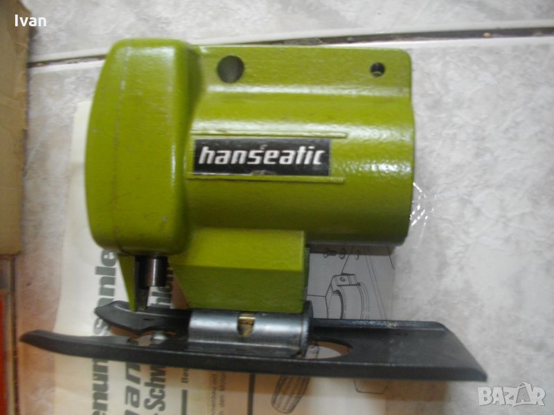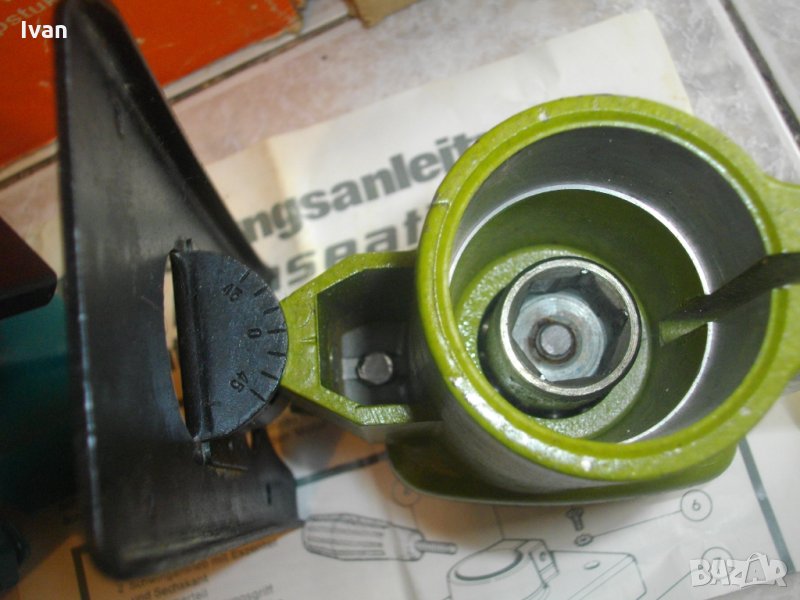 Описание на светло зелена приставка зеге - немска - марка Hanseatic. Съвсем нова приставка вертикален прободен трион-зеге,за бормашина-дрелка или машини с патронник,който има възможност да се снема.Приставката е универсална,за всички бормашини,посредством съединител към оста.Марка на приставката-Hanseatic.Немско оригинално производство.Професионален модел-изцяло масивна,метална,от дебело желязо,без пластмасови части.Наклон на плота-0-45 градуса.За стандартни Т и U образни режещи ножчета-триони.Захват на приставката към бормашина-втулка шестенна,вградена,която се вкарва посредством адаптор или гумен съединител към бормашината.Адаптора не е вкючен към приставката.Приставката е без ножче.В оригиналната си картонена кутия.
