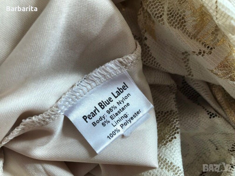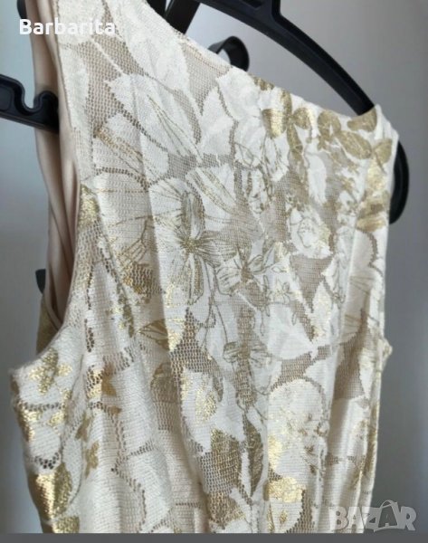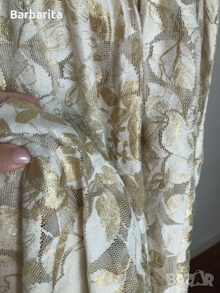 Красива лека дантелена рокля в кремаво и златно.Много мека материя с подплата отдолу.Коланът е с ластик,размер М/38.Дължина -132см .Роклята никога не е била обличана.