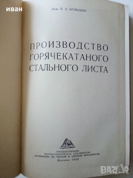 Производство горячекатаного листа - Б.Е.Бельский - 1953 г. → Обява 33187192
