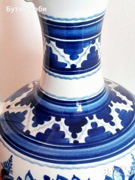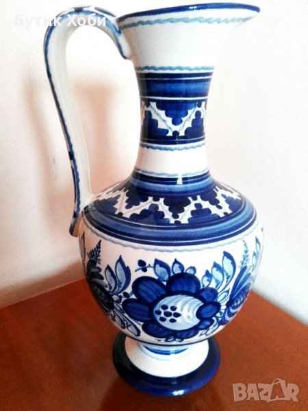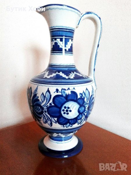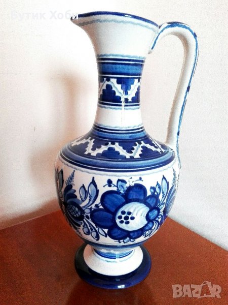 Чудесна ваза/ кана от ръчно изработена керамика. Ръчно подглазурно декориране. Маркирана е. Височина- 30см. В перфектно състояние.