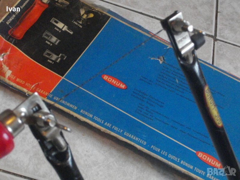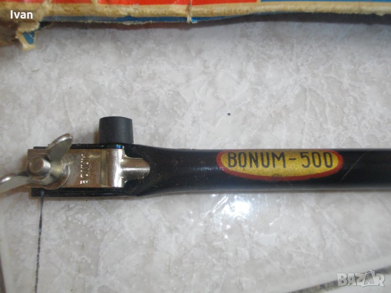 Съвсем нова,сгъваема ножовка-трион,професионален модел на Бонум.Немско оригинално производство,упоменато с маркировки. Марка и модел-Bonum-500-D.B.P. Bonum 500.Инструмента е висококачествен,от масивна дебела стомана,изцяло метален,със сгъваема дръжка,с дървено буково покритие.За малки режещи листове с дължина 150мм.Дължина на инструмента към заоблената част за захват-350мм.Ширина155мм.Към инструмента има дървена подложка за по-стабилно рязане.Инструмента е прибрана в оригиналната си немска картонена опаковка. Ножовката-трион,е с поставен на нея режещ лист.Инструмента е в пълна изправност.