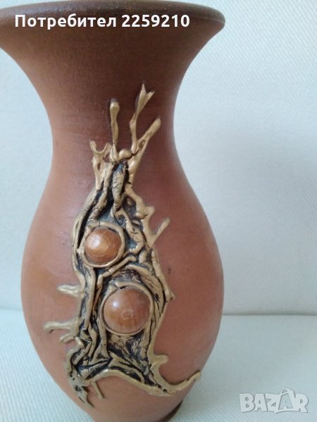 Керамична ваза арт декор с кожа и дърво → Обява 33190888