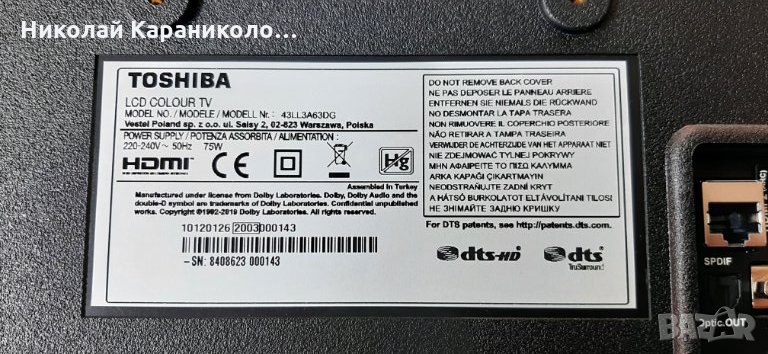 Продавам Power-17IPS62,Main-17MB211S,стойка от тв. TOSHIBA 43LL3A63DG → Обява 33193015