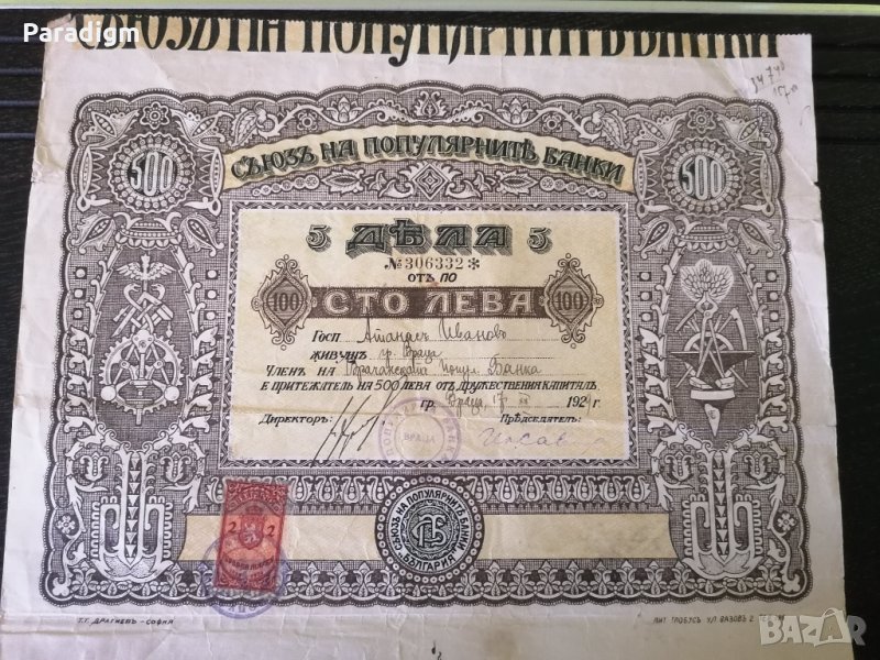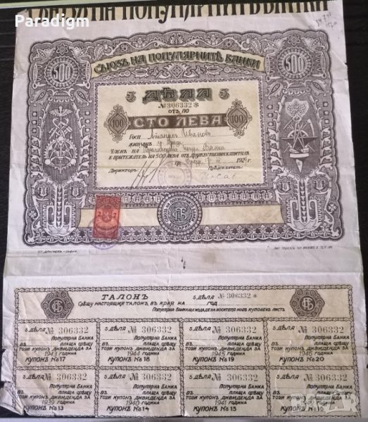 5 дяла от по 100 лева всеки от 1929г.