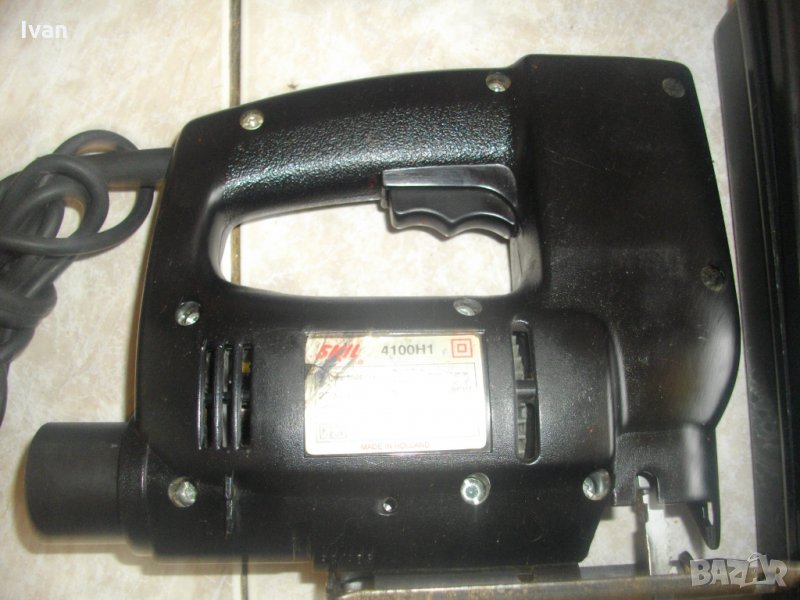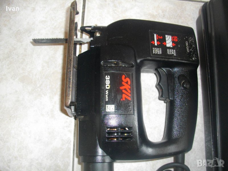 Описание на зеге Скил 380 вата в куфар-Skil 4100H1- цена 99 лв . Добро зеге-вертикален прободен трион,професионален модел на Скил.Холанско оригинално производство,упоменато на стикера. Марка и модел-Skil 4100H1.Машината е със запазен външен вид и добро техническо състояние.Работи много добре.забележка-липсва въртящото колелце под ножа,но това не пречи на работата.Мощност на мотора-380 вата,1,7 ампера,обороти-4000 в минута,постоянни.Дълбочина при рязане-до 50мм в дърво и пластика,до 3мм в желязо.Автостоп на спусъка.Машината е с оригиналният си накрайник на конектора на отпадъчен прах.Глава-кръгла,алуминиева,за болт шестограм захват.Вид режещ нож-Т образен захват.На машината има поставен оригинален режещ дълъг нож-трион.Зегето е прибрано в оригиналният си твърдосплавен пластмасов куфар,с фабричното лого.