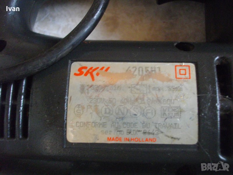 Описание на зеге Скил 400 вата без куфар - Skil 4205H1 - цена 99лв. Професионален модел зеге-вертикален прободен трион,400 ватов модел на Скил.Марка и модел-Skil 4205H1.Производство-оригинално Холандия,упоменато на маркировката. Запазен външен вид и отлично техническо състояние.Мощност на мотора-400 вата,1,8 ампера,обороти-3 000/минута,постояннни.Дълбочина при рязане в дърво-55мм,в желязо-3 мм.Автостоп на спусъка.Глава-изцяло метална,масивна,с пристягащ пръстен за захват на нож,За Т и U образни стандартни режещи ножове-триони.Вградено място на корпуса за съхранение на ножчета.Модела на зегето е без ролковите метални колела-водачи.Ножа се води от метален жлеб,без метални колелца,както на повечето модели.Към машината има 1 бр. режещ нож-трион за дърво, швейцарски, почти нов.