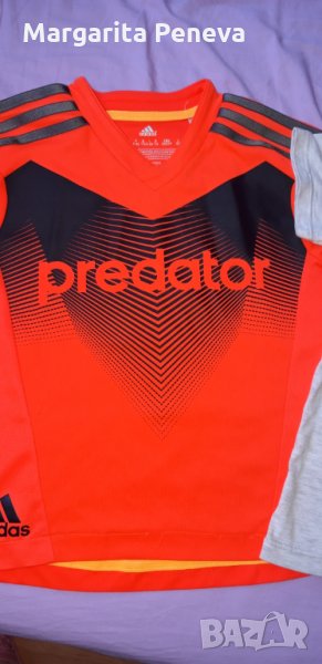 Адидаса има леко дръпнато,не е кой знае какво,но все пак е забележка,затова и цената е такава-двете за 5 лв.Иначе цвета е ярък,лепенките като нови.Другата е страхотна материя,не се мачка,стават спокойно до над 6 годинки