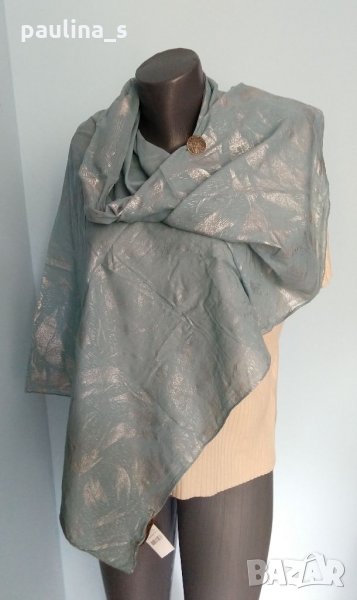1️⃣ . Дизайнерски памучен квадратен шал със сребърен принт за разкош "Pieces" accessories, от Индия, нов!