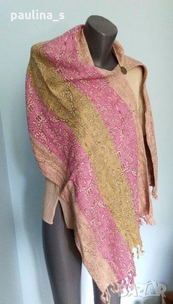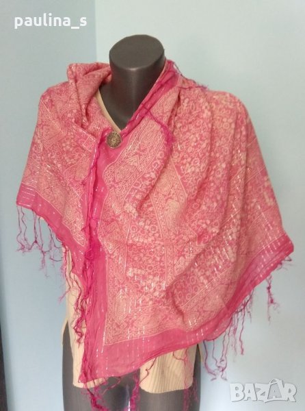 6️⃣. Розов индийски шал с флорален принт и метална нишка за разкош