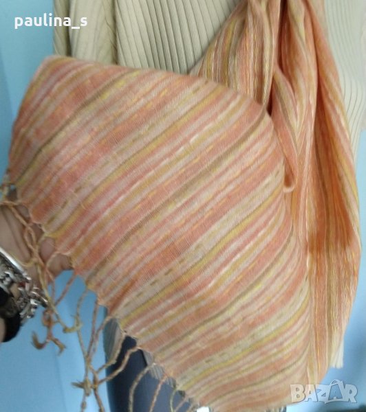 3️⃣ . Дизайнерски шал от лен и памук "KELLO" оранжева гама