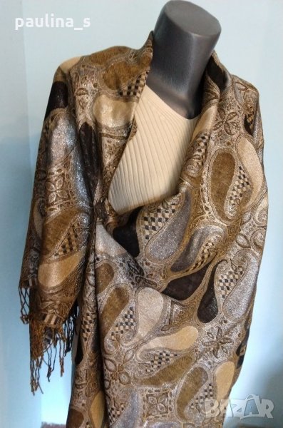 1. Нов ленен шал с метални нишки, релефен кралски принт, подходящ за повод!