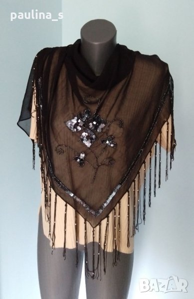3. Ръчно декориан шал от прозрачна органза с декорации от естествени речни перли и пайети Абалон. Който е декорирал, знае каква е цената само на пайетите, да не говорим за труда!