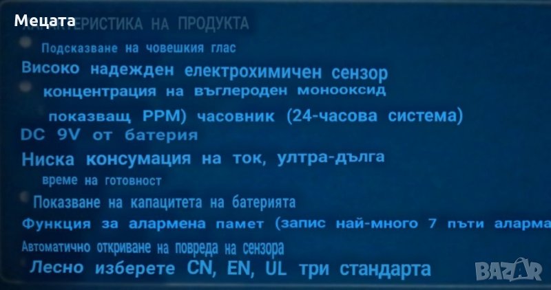 Детектор за въглероден оксид → Обява 33200050