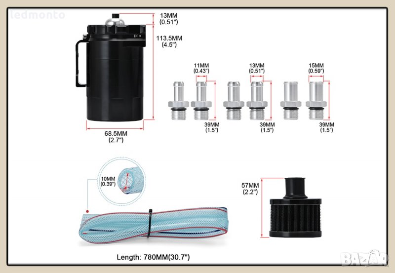 Това обаче е универсалният резервоар за улавяне на масло, ИДВАЩ НА 9ММ и 15ММ фитинг, ще работи с всяка кола.